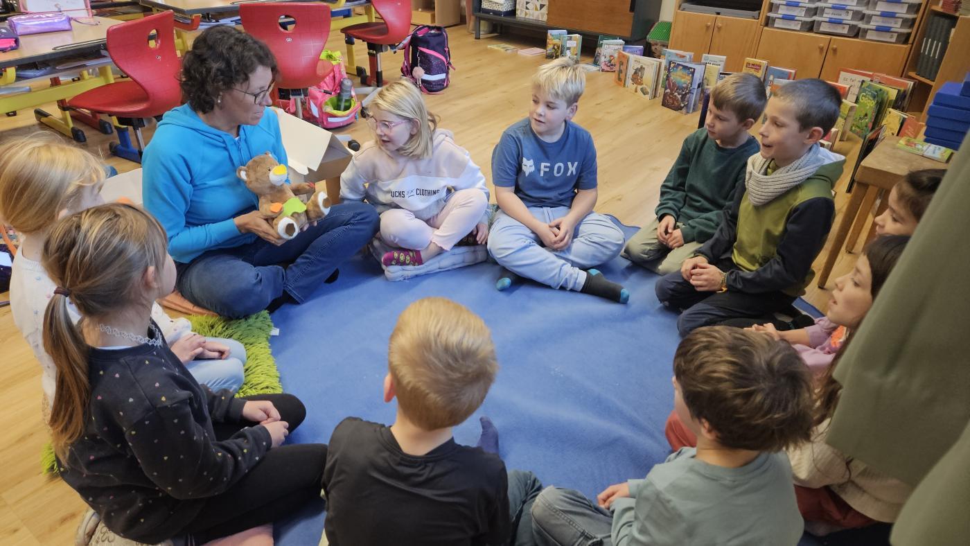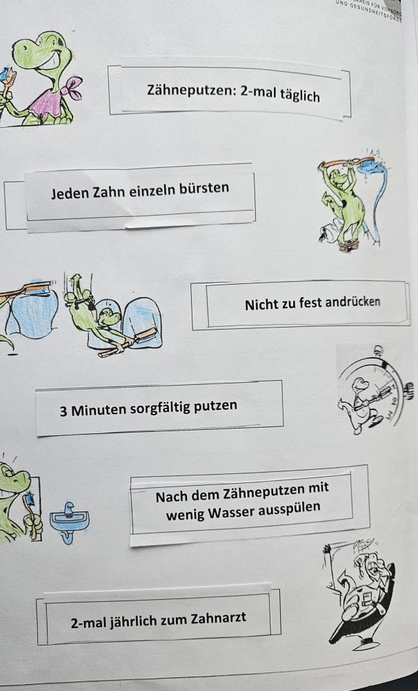 "Gesund beginnt im Mund" 29. November 2024 Gesunde Schule Am 14. November besuchte uns die Zahngesundheitserzieherin Carmen.Sie erzählte den Kindern eine spannende, lehrreiche Geschichte und übte mit ihnen das richtige Zähneputzen.