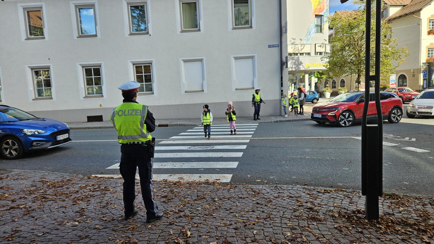 Nach einer aufregenden Busfahrt wurden wir von zwei Polizistinnen und der Volkschule Wängle beim Busbahnhof empfangen. Wir wiederholten wichtige Regeln für ein sicheres Verhalten auf dem Bahnhof und im Straßenverkehr. Danach übten die Schüler, wie man vorsichtig bei geparkten Autos und auf einem Zebrastreifen die Straße überquert.