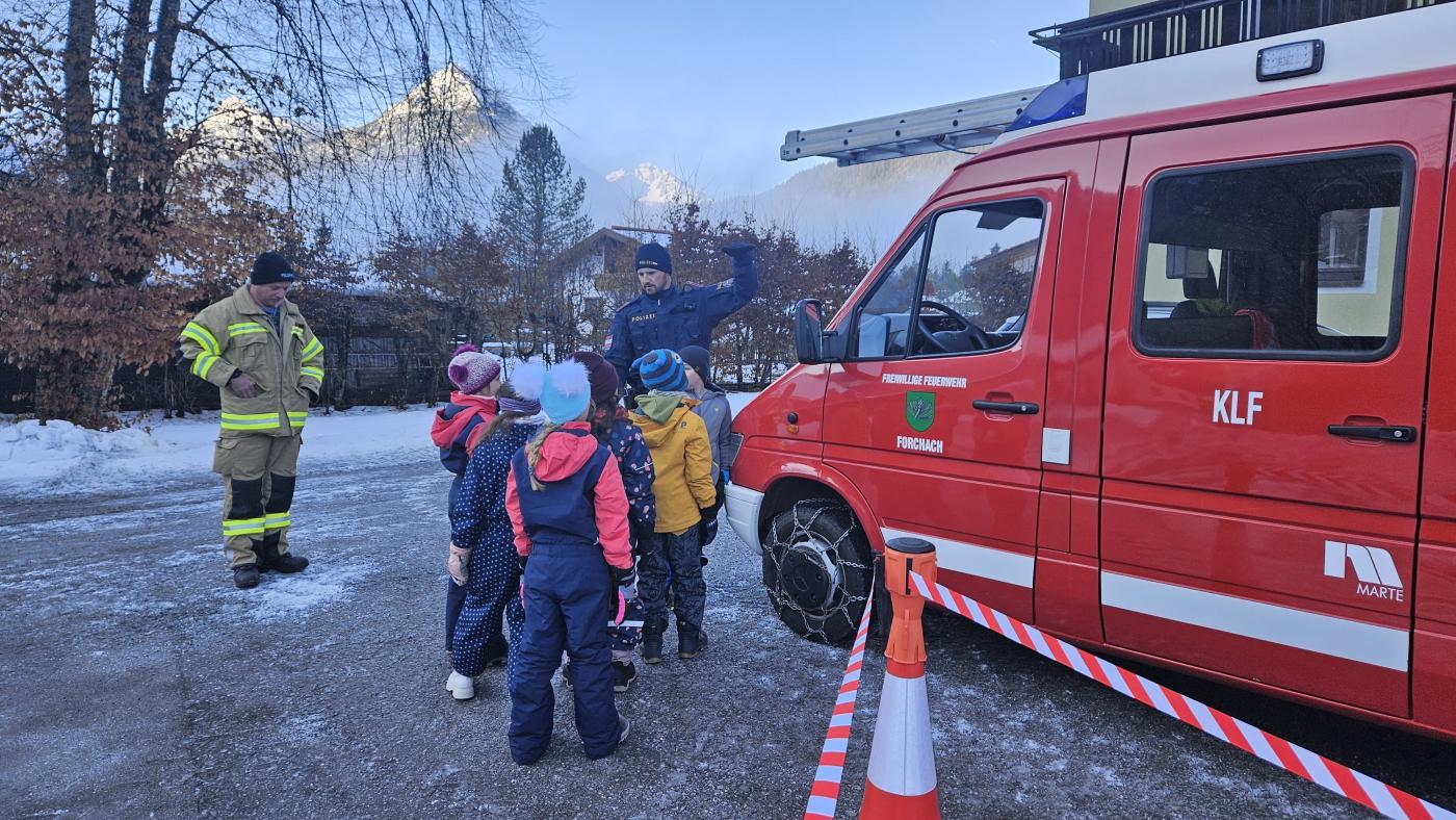 Am Donnerstag, den 9. Jänner 2025 kam Polizist Jakob zu uns an die Schule und besprach mit unseren Dritt- und Vierterlern gleich zwei wichtige Themen. Zuerst wurden die Tücken des „Toten Winkels“ anhand eines Feuerwehrautos verdeutlicht. Kann dich der Autofahrer sehen?
